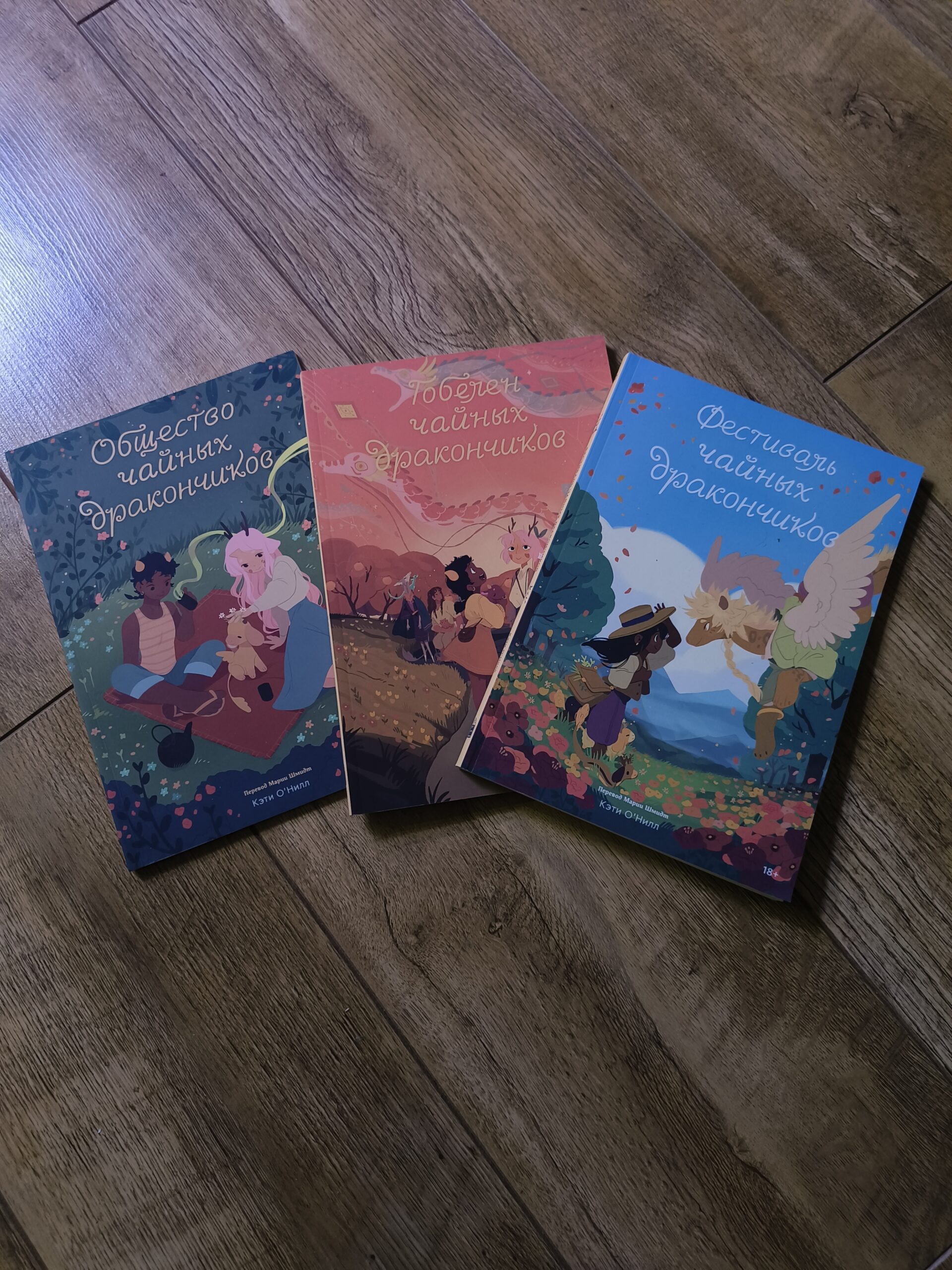 В тёмные времена инвестирую в татуировки и комиксы. На татуировку пока не заработала, а вот комиксов себе купила. Как же я рада, что Popcorn Books успели перевести и издать Кэти О’Нилл. Она рисует волшебные комиксы для подростков разных градаций. И серия про чайных дракончиков как раз такой комикс. Про поиск личного пути. Про освоение мастерства. Про дружбу, любовь и партнерство. Всё это в авторском мире, где есть настоящие драконы. А есть их братья меньшие. С милыми рожками, листочками и цветами на голове. В них они накапливают воспоминания. И если уметь правильно собрать их и заварить, можно разделять с дракончиком эти воспоминания. Чайные дракончики живут дольше людей, но очень к ним привязываются. Они не могут выживать в дикой среде, как котики. Поэтому есть “Общество чайных дракончиков”. Его адепты пристраивают чайных дракончиков потерявших своих хозяев. Новых, наверное, тоже пристраивают. Но в первых трех книгах про это ничего нет пока.