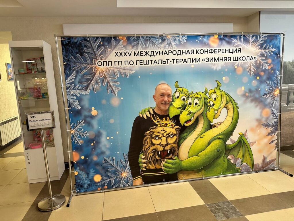 Привезла вам драконов оттуда, где сама не ожидала их встретить. С конференции гештальт-терапевтов. В этом году прямо драконье буйство. Тут и президент МГИ в обнимку со Змеем Горыночем и хтоническая хрень пожирает реальность за спиною Алёны Юдиной.