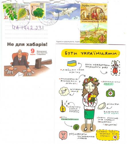 Практически кавайный украинский патриотизм :) Даже не знаю, как к ней относиться. Но в сочетании конверта и открытки прекрасно решительно все. И, наконец-то, у меня есть марка с акацией. Спасибо повышению тарифов.