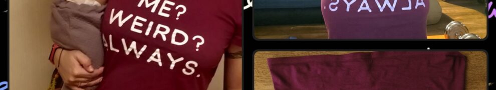 Достаточно ли странно купить футболку из-за надписи? Разочароваться в шрифте и ткани, но оставить? Мариновать годами? А потом вдруг достать, снова разочароваться и оставить? Сошлю ее все-таки в домашние. Все-таки удобная и подходит к большинству уютных низов.