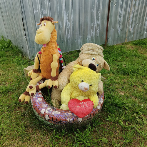 В-четвертых, есть детская площадка. Но очень маленькая. Без песочницы. И довольно бестолковая. Зато Дважды Бурерожденному очень понравился динозавр.