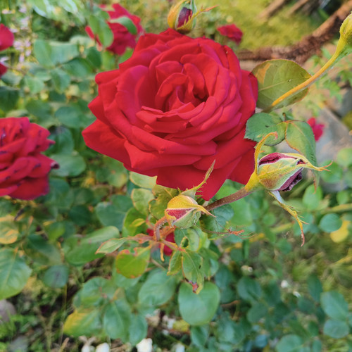 Щупленькие в прошлый приезд розовые кусты чуть разрослись.