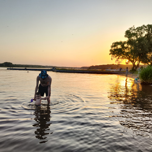 Чуть-чуть плавали. Старались каждый день. Пляж в веточке совершенно чудесный. Песчаный. Да, водоросли есть, но их не критично много. Жаль, что Дважды Бурерожденный в первый же заход немного перепугался. Зато освоенное слово “бда” (“вода”) теперь звучит у него фантастически ярко. Даже, когда он просто просит попить.