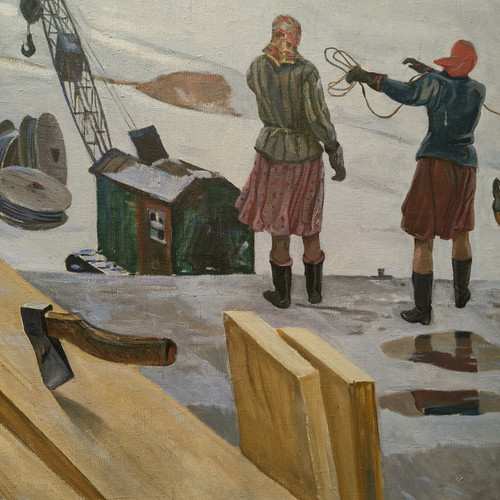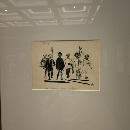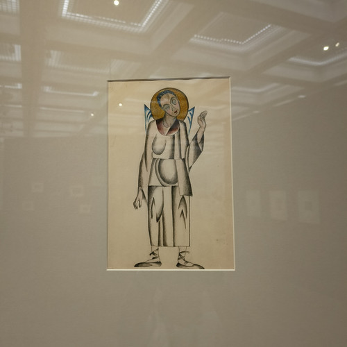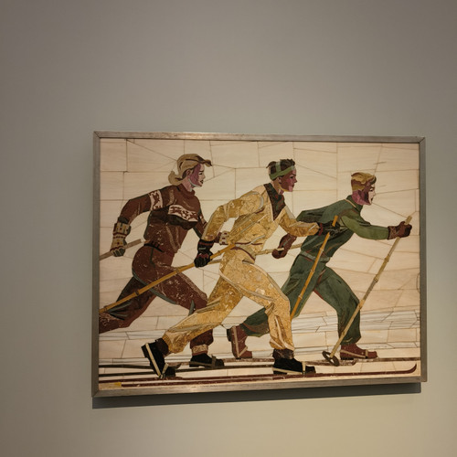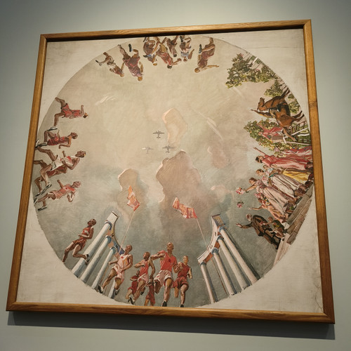 Но тут было светло, каким бывает небо только на картинах Дейнеки. После выставки Кустодиева, с трудом удерживалась от сравнения. Вроде и там, и там буйство жизни. Но Кустодиевские богини – купчихи. В них мягкость, расслабленность, сытость и уверенность в том, что весь мир подождёт. Богини Дейнеки – спортсменки, комсомолки и работницы. В них столько же плоти, но ни капли мягкости. Будто ещё минута и она поспешит на работу. Или на тренировку. Где у Кустодиева праздник потребления в хаосе красок посадских платков, самоваров и каких-то баранок, там у Дейнеки праздник труда в торжестве порядка: все строем, одеты по форме или около того, каждый на своём месте.