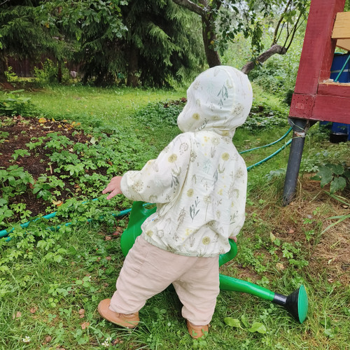 Дважды Бурерожденному было скучновато. Зато на обратной дороге в Веточку мы заехали на дачу к мужниному друг. Там были травы, мхи и бочки. А ещё – лейка по размеру. Поливать шиповник под дождём крайне увлекательно.