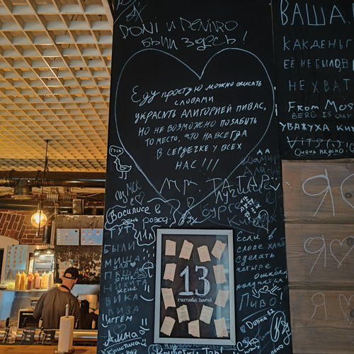 Пообедали мы в Mr.Berg, после того, как впечатлились временем ожидания пиццы в сосденем заведение – от 1,5 часов. Там было мило. Дружелюбно в отношении Дважды Бурерождённого. Ему дали прогуляться. Потрогать барные стулья и что-то на стойке. И там же он съел свой первый в жизни нагетс. Я же любовалась интерьером. Люблю такие места.