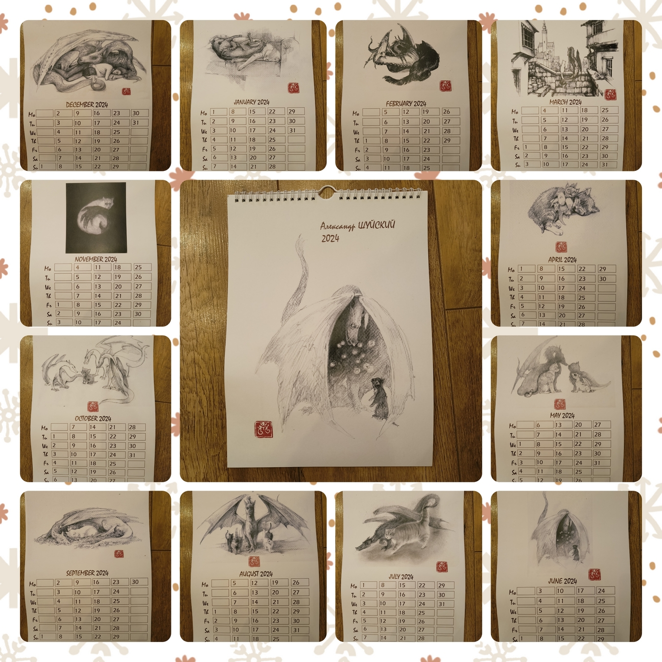 Со многим прощаюсь в ушедшем году. Особенно с надеждами на встречи. Вот оно случилось – не повстречались с драконьей подругой за весь год. Нет, не так, как у нас в гештальте говорят: “встреча не случилась”. А в буквально смысле: не увиделись, чтобы обменяться подарками. И в виртуальном – чтобы отправить подарок хотя бы курьером. В результате подарок “протух”. Потому что это был календарь [ljuser]a_str[/ljuser] с котами и драконами. Теперь мне жаль, что он целый год никого не радовал, а пылился в пакете. Давайте, что ли вам покажу. Continue reading