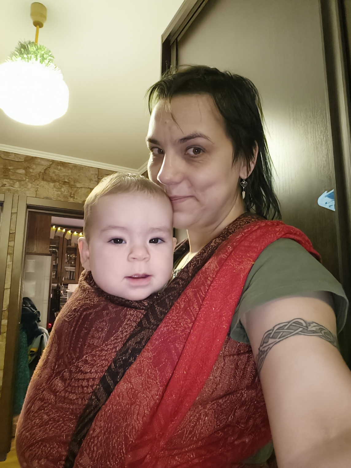 Как я уже писала – я мама с задержкой маьтеринского развития. Поэтому всерьез осваивать слинги (красивые шарфы для приматывания ребенка к себе) начала с серьезного веса в 7+ кг. Но это не только мое раздолбайство. Первые месяцы Дважды Бурерождённый не очень любил слинги. Во время беременности, я мечтала, как я буду красивой слинго-мамой, как буду прижимать к себе ребёнка красочным жаккардом и делать всё по дому, гулять по парку, ходить в магазины и кафе и всё это со свободными руками. Яре очень не нравилось. Ему и в коляске не нравилось. А потом что-то перевернулось и он превратился в улыбчивого ребенка. Яростного исследователям мира вокруг. К счастью, в тот же миг стало возможным мотать слинги. И я погрузилась в мир субкультуры мам малышей в красивых тряпочках. И, конечно, натолкнулась в интернете на тряпочку мечты.