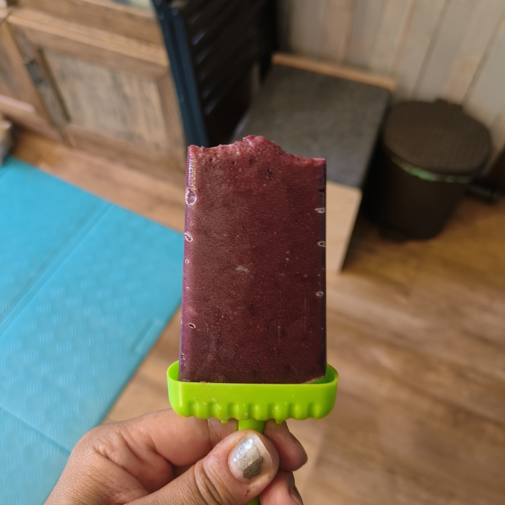 7. Приготовила свою любимую веганскую мороженку с поправкой на разрешенные сыну продукты. Добавила туда облепихи. Заменила мёд на банан. Получилось вкусно, но совсем по-другому.