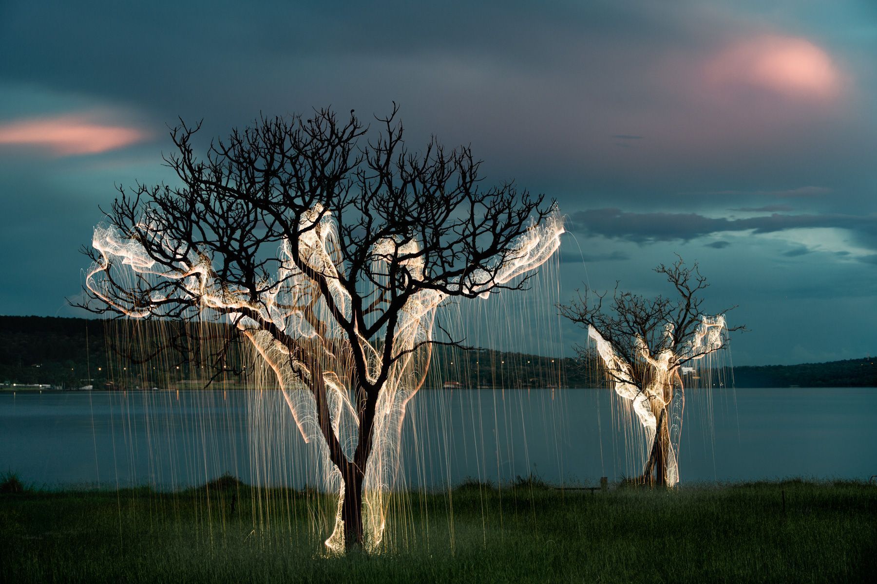 Меня впечатлили фотографии бразильского художника по имени Vitor Schietti. Это съемки с большой выдержкой, которые позволяют зафиксировать траекторию движущихся огней. Наверное, большой труд, так приспособить фейерверк, чтобы создать настоящую картину. А потом я задумалась про деревья и свет. Вот и тема для рубрики #деревопопонедельникам и заодно ко дню фотографа.