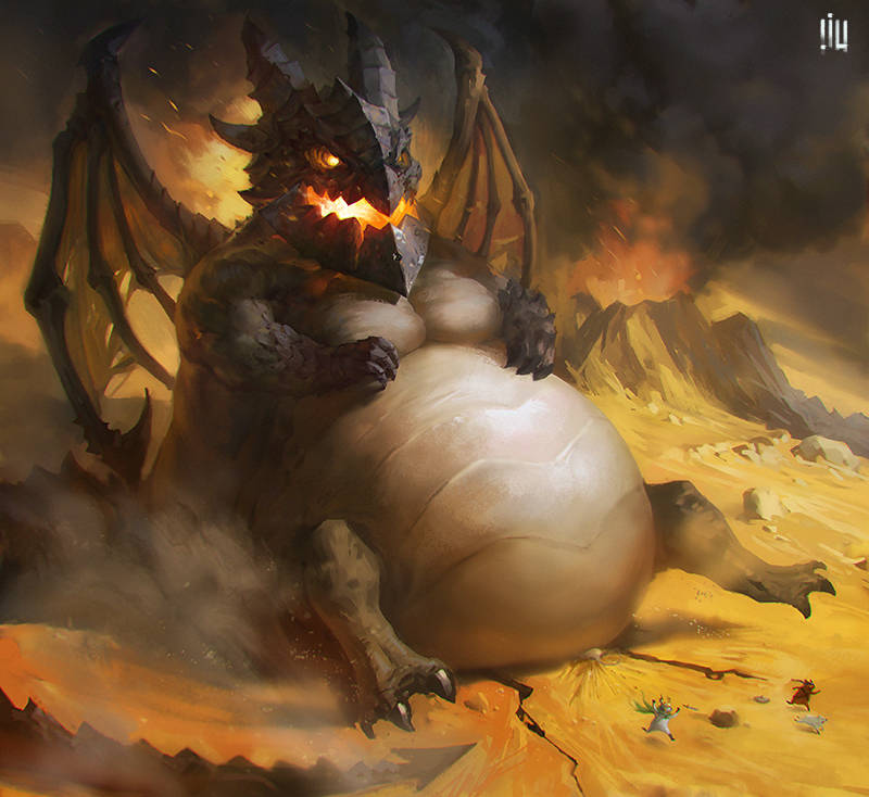 а дракон урчит, пускает из носа дыма колечки,